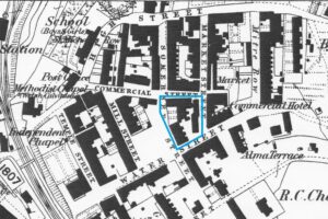 Sometime after the 1870’s the shops and houses on Market Street in the area the Glasgow House, had been added to and reconstructed. The Ordnance Survey Map of 1880 shows the different structures in the area. (as seen on the map right).