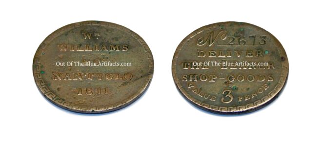 It has the wording “Wm Williams & Co Nantyglo 1811” on the obverse with “No.2673 Deliver the Bearer Shop Goods Value 3d” on the reverse.